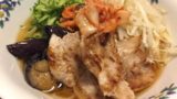 CookDo豚バラ大根・すき焼き煮をメインの献立に。冷凍していた油揚げ・しめじ・ほうれん草・長ネギなどを入れ、