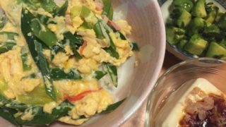 休日の夕飯です。 冷蔵庫にあったもの+手のかからない料理ということで出来上がった御前です。 献立: 野菜いっぱいお味噌汁・冷奴・納豆・鯖水煮缶 冷奴の上には梅ひじき、納豆には芽かぶとアボガドを添えて シンプル過ぎるほど〜シンプルですが、冷奴...